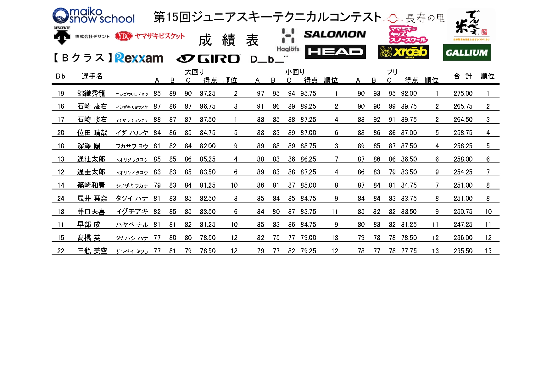 2025年_リザルト発表 PDFダウンロードはこちらリザルト_ジュニアコンテスト ■Aクラス ■Bクラス ■Cクラス ■Dクラス By webmaster | 2025年3月2日 | トピックス | ← Aクラスにミスジャッジがあり修正させてもらいました 同点の順位判定について →